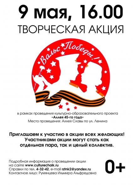 на Аллее Славы состоится творческая акция «Вальс Победы». Участниками могут стать как отдельная пара, так и целый коллектив. Чтобы стать участником акции «Вальс Победы», необходимо: