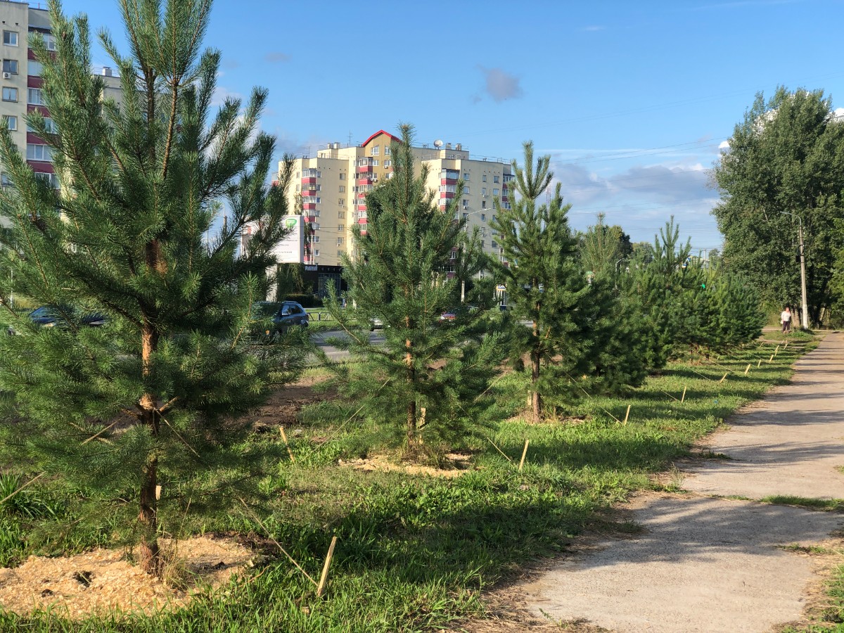 Работы по пересадке молодых сосен осуществляет Комбинат благоустройства. Благодаря приобретённому новому оборудованию – пересадчику деревьев, работы по озеленению нашей территории будут проходить быстрее, эффективнее и максимально безопасно для растений.