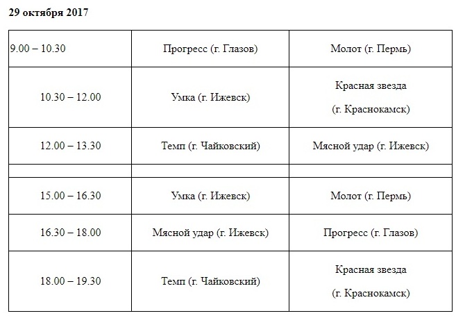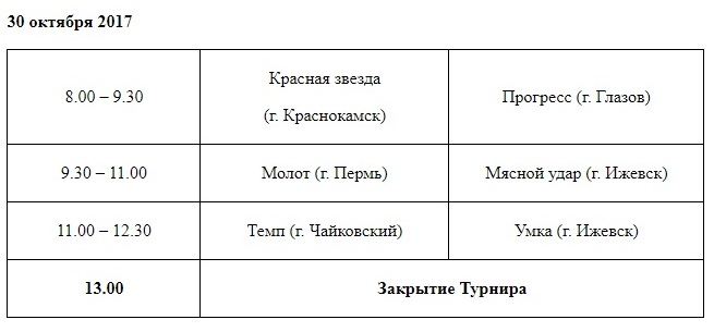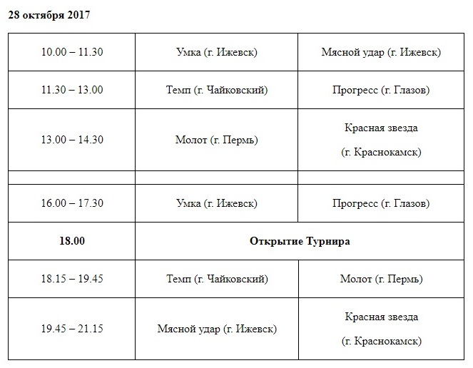 Представляем вашему вниманию расписание турнира, который пройдёт в СК «Темп».