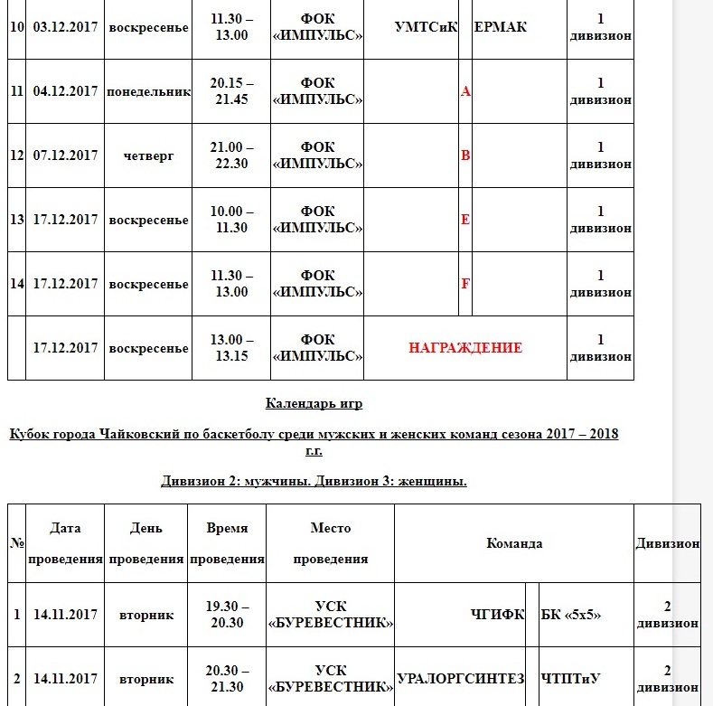 С 14 ноября в спортивных залах УСК «Буревестник» и ФОК «Импульс» стартует Кубок города Чайковский по баскетболу среди мужских и женских команд сезона 2017-2018 г.г.