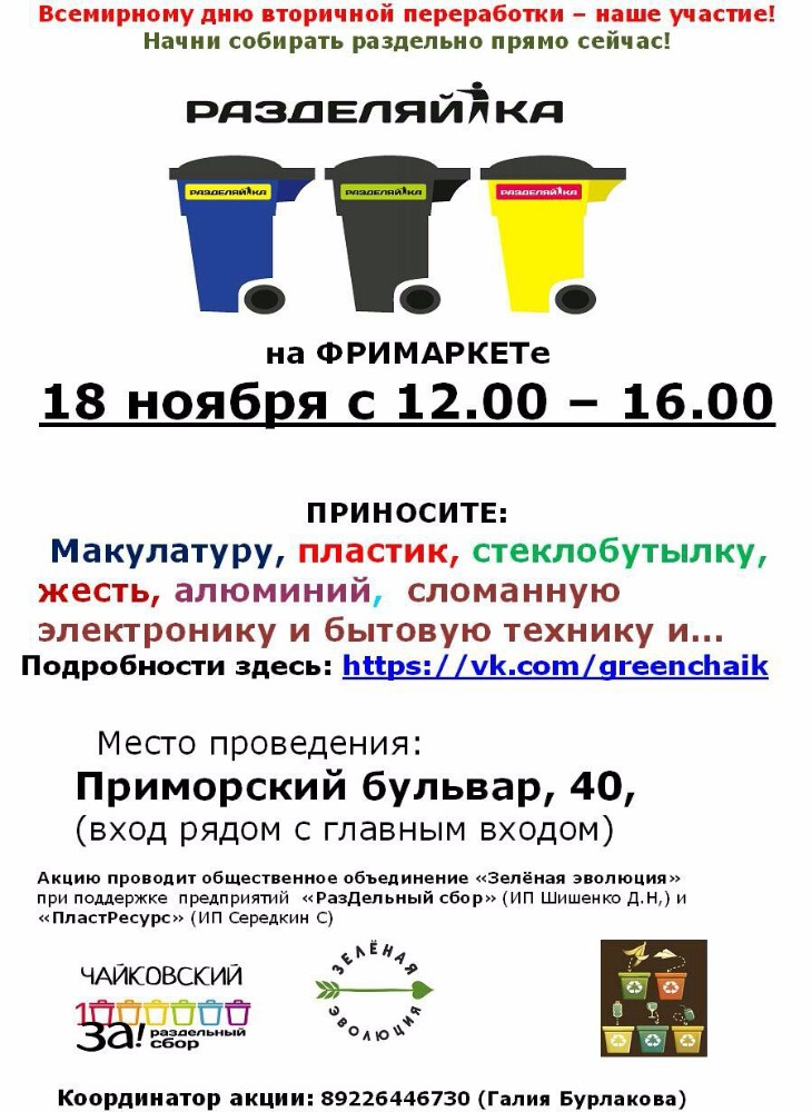 Кроме того, во время работы фримаркета пройдёт традиционная эко-акция "Разделяйка".