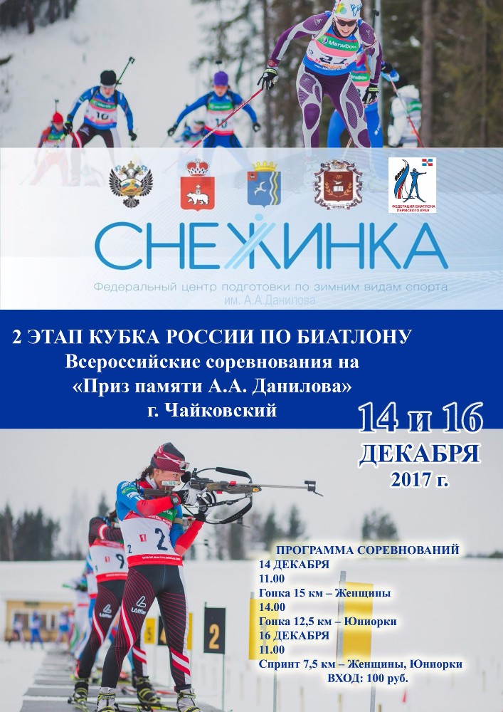 На лыжно-биатлонном комплексе Федерального центра «Снежинка» имени А.А. Данилова с 12 по 17 декабря пройдёт 2 этап Кубка России и Всероссийские соревнования по биатлону «Приз памяти А.А. Данилова».