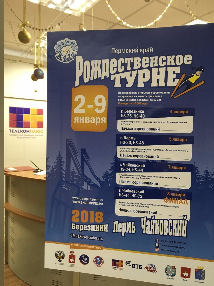 Начнутся состязания 4 января в городе Березники. На следующий день, 5 января, спортсмены будут соперничать на трамплинах в краевой столице, а третий и четвертый этапы «Рождественского турне» пройдут 7 и 8 января на ФЦП по ЗВС «Снежинка» в Чайковском.