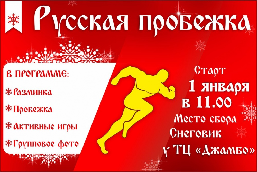 Мы приглашаем всех желающих принять участие в Русской пробежке! Город Чайковский, Снеговик у ТЦ "Джамбо". Ждём всех желающих 1 января 2018 года в 11:00.