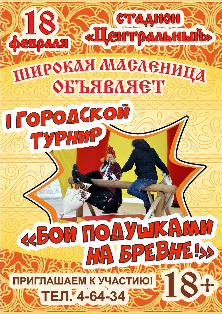 Подготовили организаторы и I городской турнир «Бои подушками на бревне», участники которого смогут попробовать свои силы в традиционном народном потешном состязании. Организаторы народной забавы подчёркивают, что к участию в турнире не допускаются лица в состоянии алкогольного опьянения.