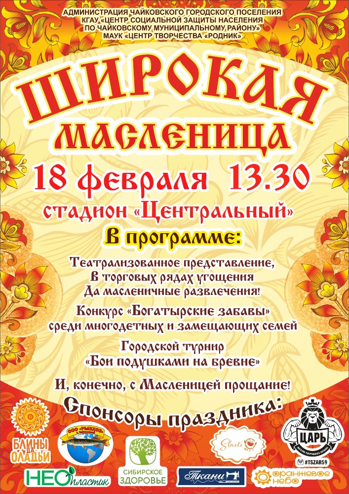 Масленичное гуляние пройдёт в Чайковском 18 февраля