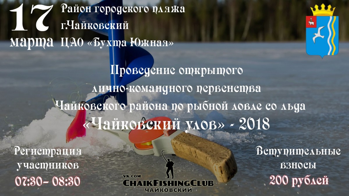 Уже в эту субботу, 17 марта, в районе Чайковского городского пляжа на территории «Бухты Южной» состоится открытое лично-командное первенство Чайковского муниципального района по рыбной ловле «Чайковский улов – 2018».