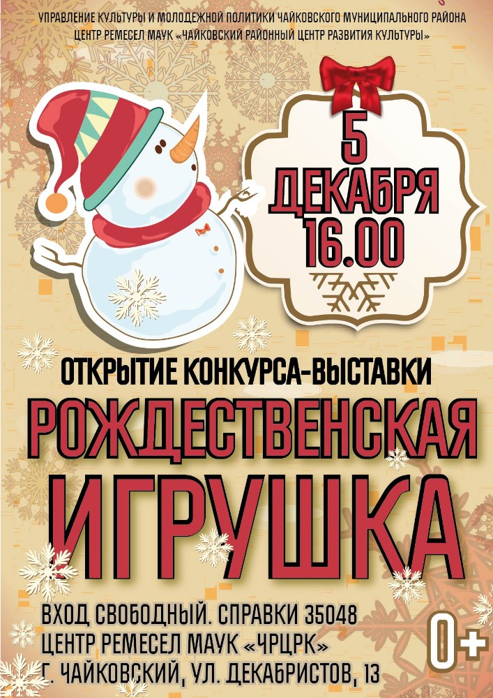 Каждый год, традиционно в декабре, Центр ремёсел МАУК «Чайковский районный центр развития культуры» распахивает двери для жителей и гостей Чайковского муниципального района, чтобы открыть долгожданный районный конкурс - выставку «Рождественская игрушка».