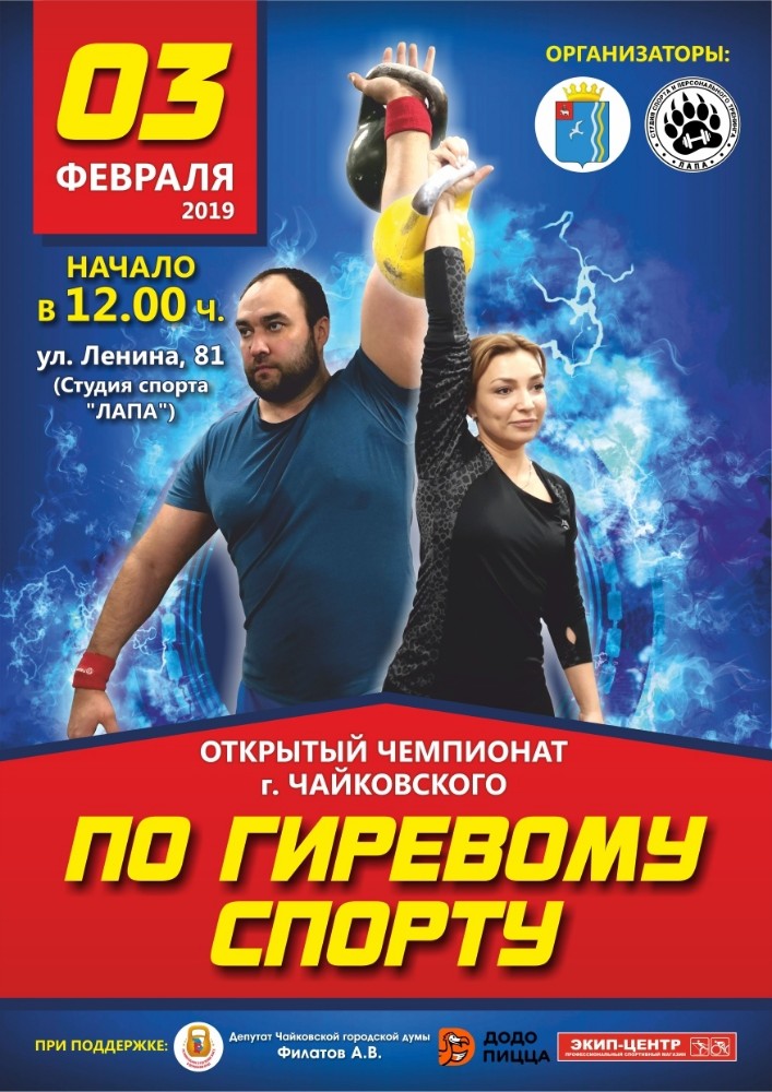 Скоро в Чайковском пройдёт открытый чемпионат города по гиревому спорту. В программу соревнований включены номинации в двоеборье среди мужчин, а так же в рывке среди юношей, женщин и мужчин-ветеранов.