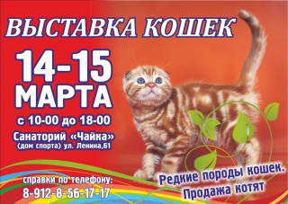 В течение двух дней в Доме спорта санатория «Чайка» пройдет международная выставка. Все желающие смогут насладиться кошачьей красотой и грацией.