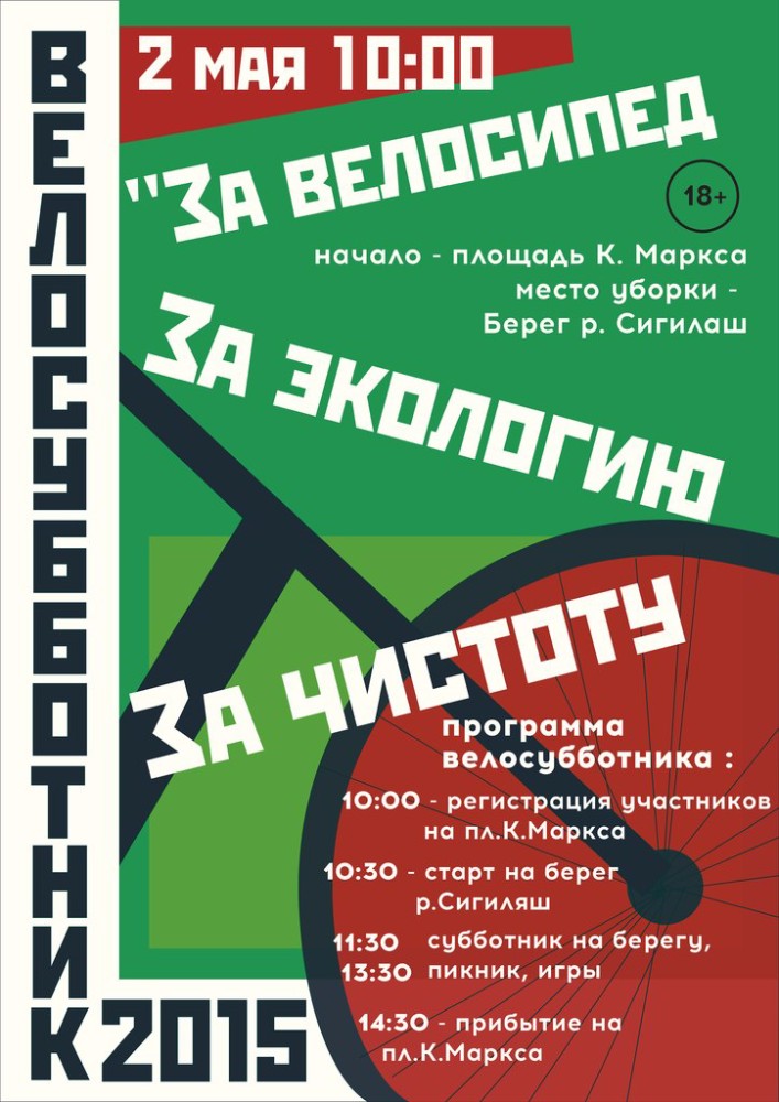 По задумке организаторов велосубботника общественного объединения «Зеленая эволюция. Начало», велосипедистам предлагается веселой дружной компанией отправиться на реку Сигилаш. Там они смогут не только вдоволь пообщаться, сыграть в подвиженые и игры, но и уделить внимание проблемам экологии, проведя субботник.