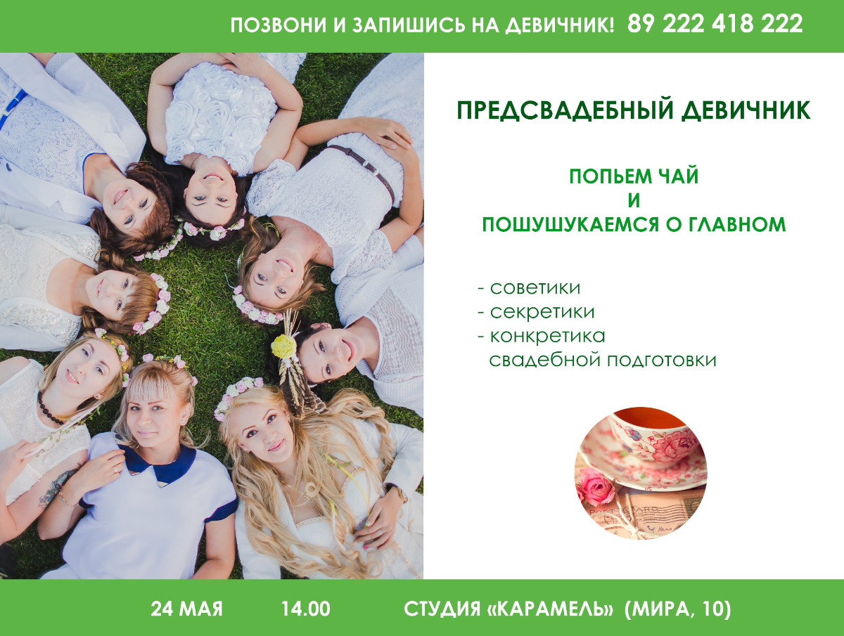 Записаться на девичник можно по телефону 89222418222, а также вступить во встречу в соцсети «Вконтакте».