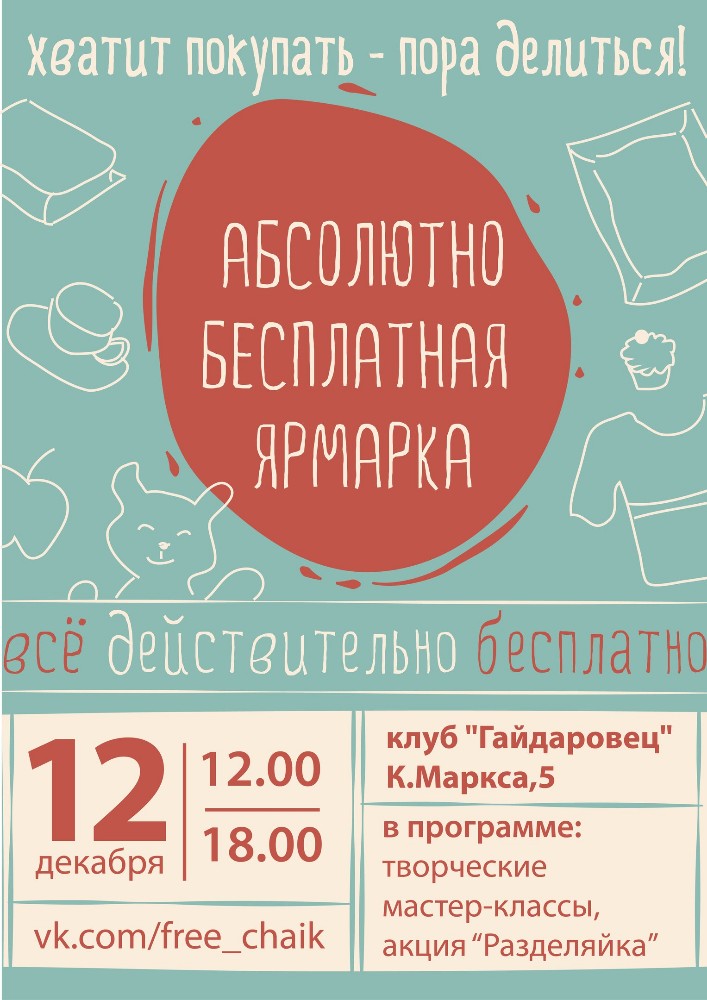 12 декабря с 12.00 до 18.00 в клубе «Гайдаровец» по ул. Карла Маркса, 5 состоится четвертый фримаркет.