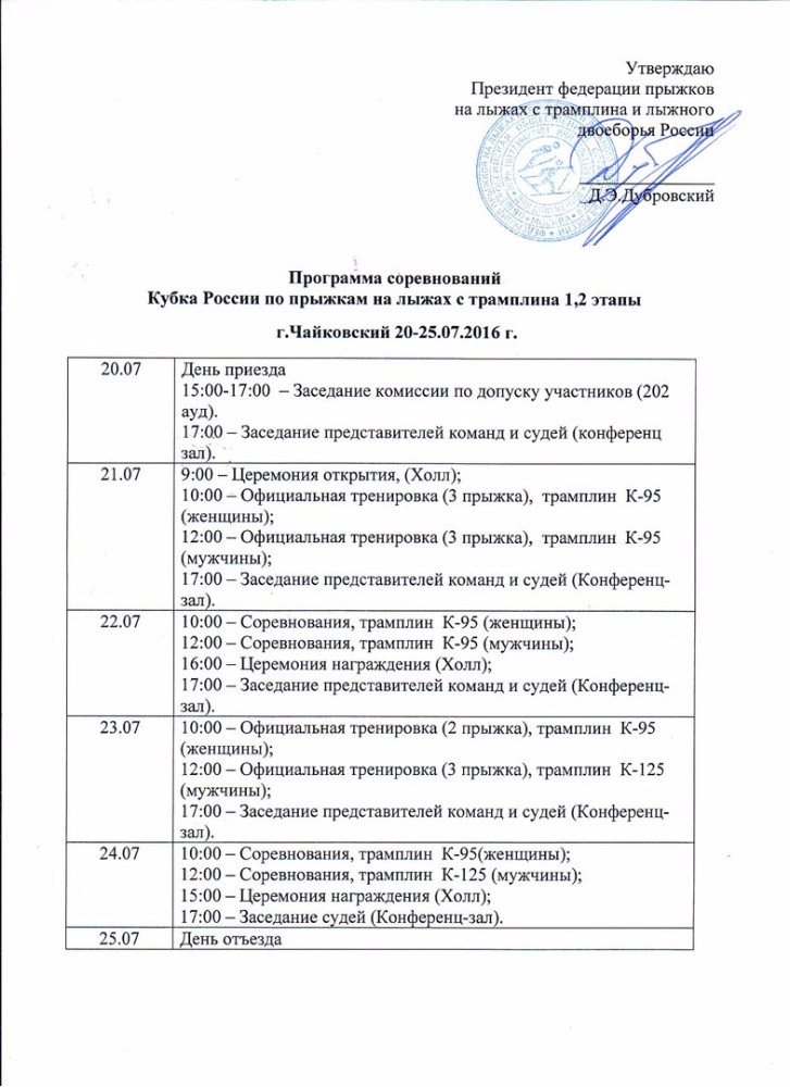 Российским «летающим лыжникам» вновь предстоит покорить чайковские трамплины. На этот раз в рамках Кубка России с 20 по 25 июля. Официальное открытие соревнований состоится 21 июля в 09:00, а в 10:00 стартуют тренировки на трамплине К-95.