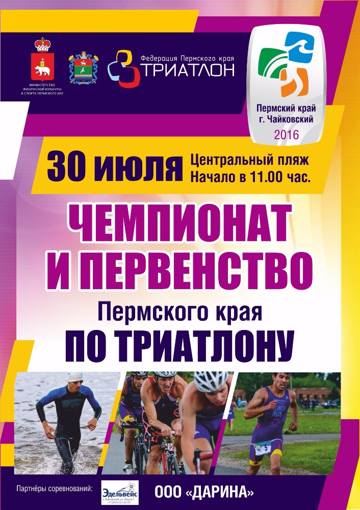 В субботу, 30 июля, в Чайковском состоится Чемпионат и Первенство Пермского края по триатлону. В связи с предстоящими соревнованиями с 11:30 до 14:00 будет ограничено движения транспорта по улицам Кабалевского и Ленина.