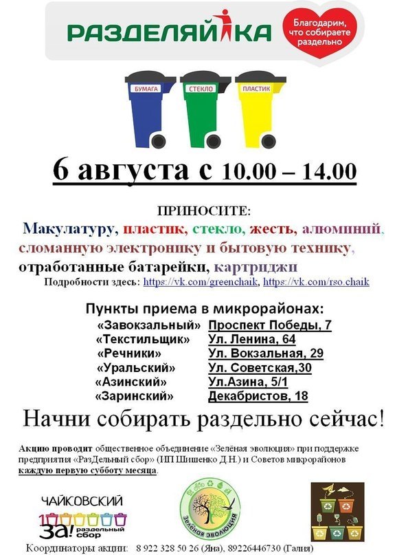 Подробности в группах: «Чайковский. Зелёная эволюция» и «Раздельный сбор отходов в г. Чайковский».