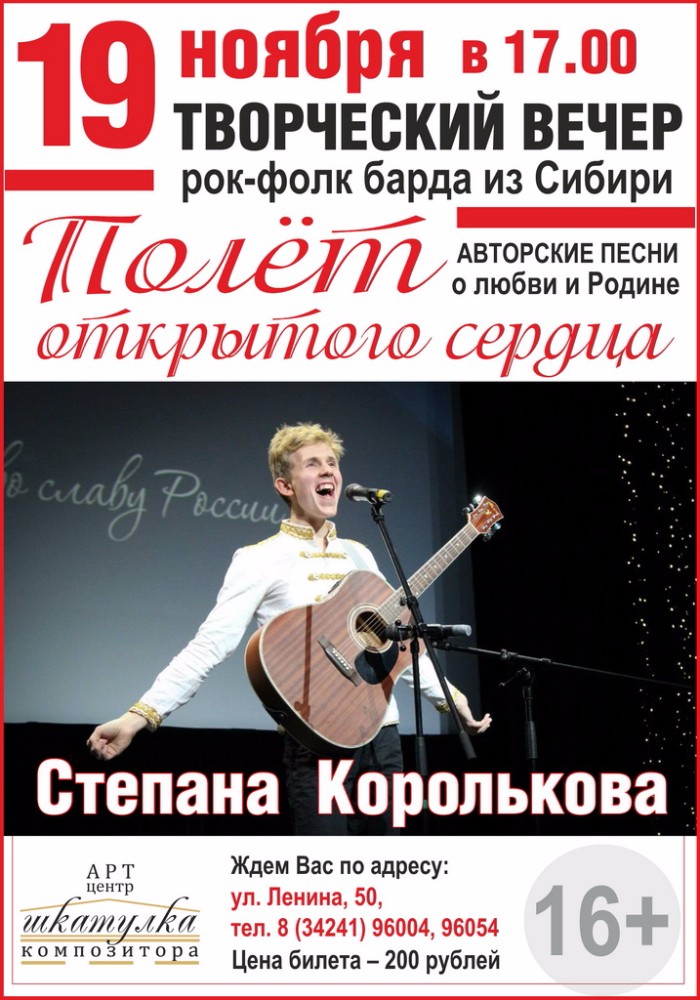 В Чайковском районе бард выступит с двумя концертами. 12 ноября – в культурно-спортивном центре в селе Фоки, а 19 ноября в Чайковском в арт-центре «Шкатулка композитора» автор и исполнитель проведёт творческий вечер «Полёт открытого сердца».