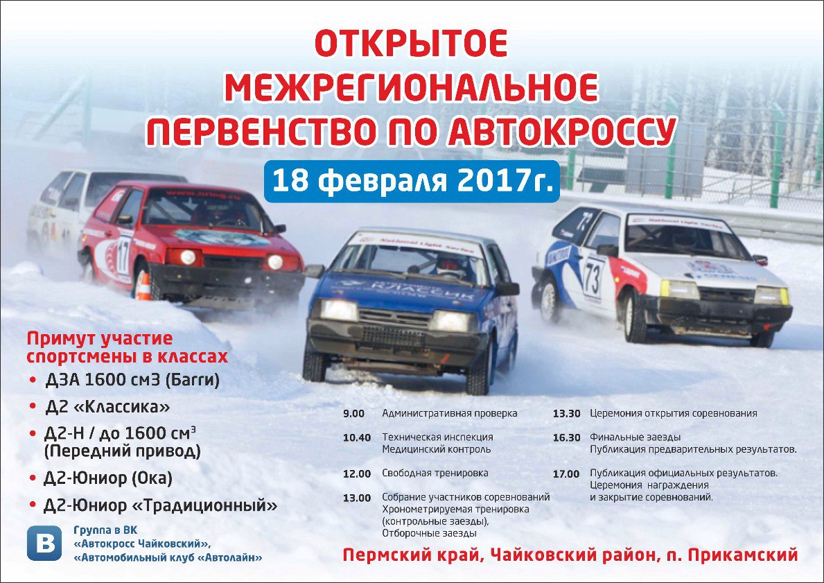 Хорошая новость для любителей автомобильного спорта – в ближайшую субботу, 18 февраля, в пос. Прикамский Чайковского района состоится Открытое межрегиональное первенство по автокроссу. В соревнованиях будут участвовать юноши и взрослые спортсмены. На данный момент, по словам организаторов, заявки подали около 20 человек из Чайковского, Перми и Ижевска.