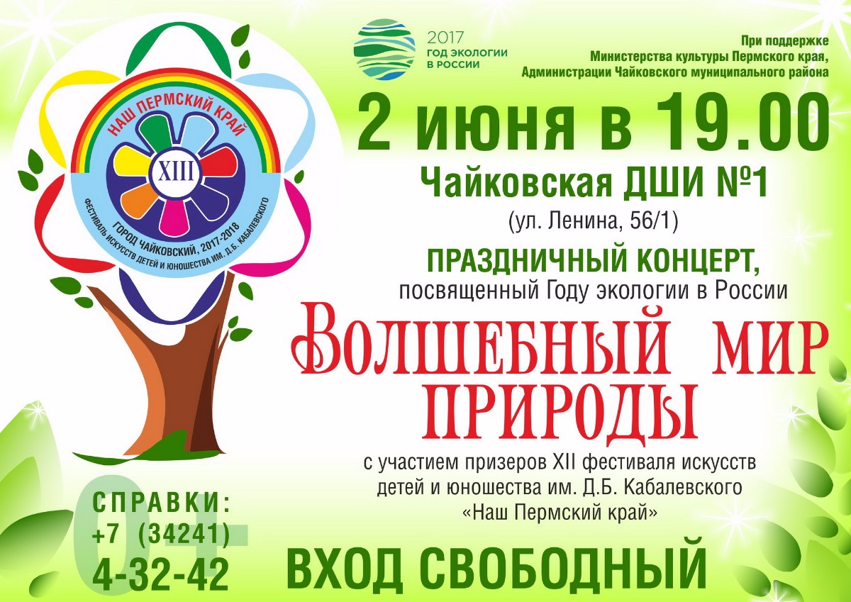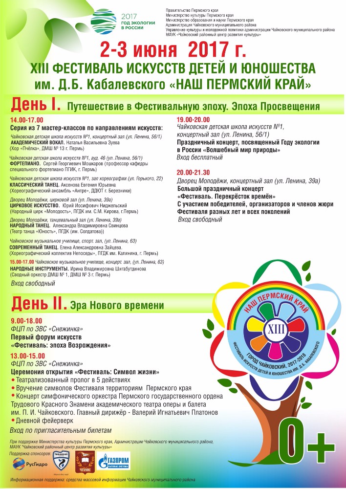 2 и 3 июня в Чайковском состоится крупномасштабное краевое мероприятие – XIII фестиваль искусств детей и юношества им. Д.Б. Кабалевского. Мероприятие пройдёт на различных площадках Чайковского района. Основная тема XIII Фестиваля – «Фестиваль и Я: культурная эволюция».