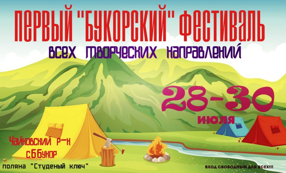 С 28 по 30 июля в с. Б. Букор пройдет Первый «Букорский» фестиваль, посвященный «году Экологии». Место проведения фестиваля - поляна «Сутденый ключ».