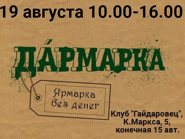 Очередная «Дармарка» состоится уже в ближайшую субботу, 19 августа. Абсолютно бесплатная ярмарка пройдёт в клубе «Гайдаровец» (ул. Карла Маркса, 5) с 11:00 до 16:00.