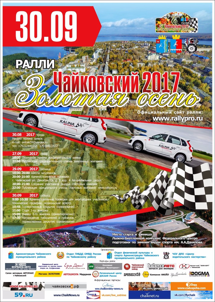 В субботу, 30 сентября, на территории Чайковского района и города Чайковский вновь состоится любительское ралли «Чайковский - золотая осень – 2017».