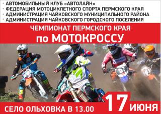 Чемпионат и Первенство Пермского края по мотоциклетному кроссу пройдут 17 июня в селе Ольховка.