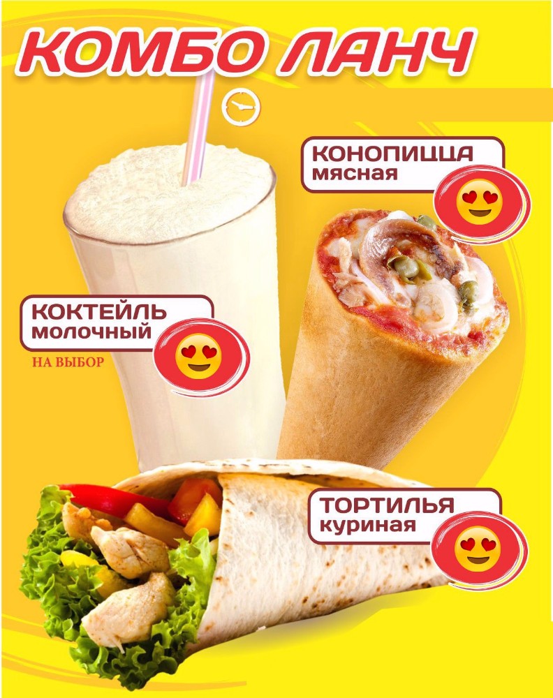 Заказчикам доставляют различные пиццы, в том числе десертные, продукцию фри, напитки, за исключением алкогольных, а также маффины, пончики и другие десерты. Есть комбинированные наборы – это своеобразный бизнес-ланч, в который входят пицца и салат. Покупателям предлагают несколько вариантов таких наборов, поэтому каждый может подобрать то, что ему по вкусу. Кроме того, эти наборы выгодны по цене.