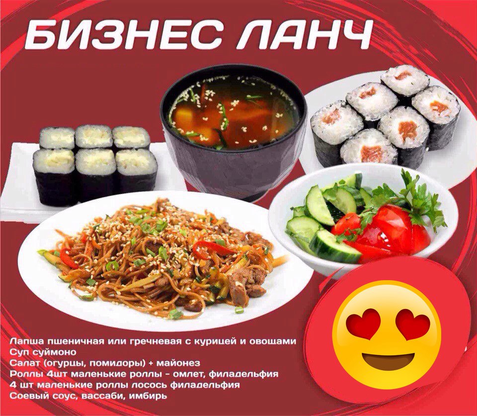 Желающим сделать заказ в «Суши-ёши» особенно рекомендуют обратить внимание на японскую кухню. В японские ланчи входят салат, пшеничная или гречневая лапша, рис с овощами или рис с овощами и мясом, а также суп и роллы. Кроме того, компоновать бизнес-ланчи клиенты могут по своему усмотрению. Стоимость таких обедов составляет от 220 руб. Очень популярен на заказ сет «праздничный» (проверено на себе – прим. авт.), который подходит для любого торжества, ну, или просто для компании друзей, собравшихся вместе.