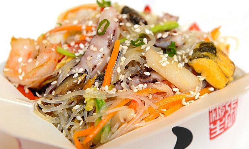 Ассортимент блюд здесь огромный. Есть и японская кухня: суши, роллы, различные закуски – кальмары в кольцах, креветки. Есть китайская: рис, лапша с овощами и мясом, супы, и, наверное, самый большой в городе ассортимент еды «wok». Есть европейская кухня: русские блинчики, большой ассортимент пицц разного размера, от малюсеньких – для детей до гигантских – для большой компании. Имеется даже сладкая пицца.
