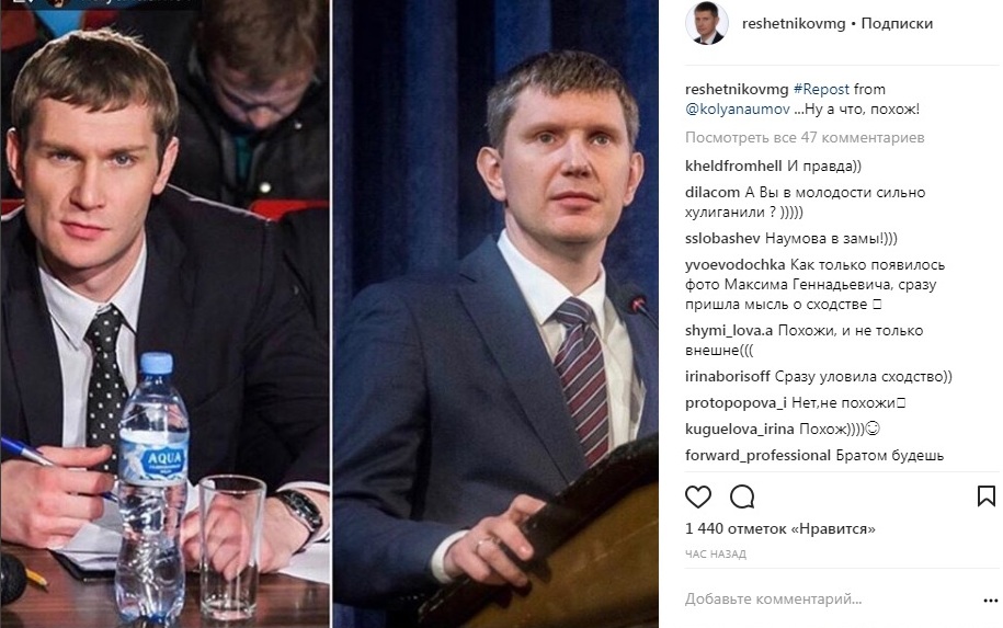 Максим Решетников прокомментировал своё сходство с актёром. «Ну а что, похож!», — подписал под сравнительным коллажем глава региона.