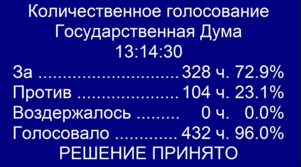 Накануне Госдума РФ одобрила в первом чтении законопроект о повышении пенсионного возраста в России. Законопроект поддержали 328 депутатов, 104 проголосовали против, воздержавшихся не было.