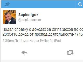 "Подал справку о доходах за 2011 г.: доход по основному месту работы — 2 835 410 руб., доход от препод. деятельности — 7 746 руб. , продажа квадроцикла — 380 тыс.руб."