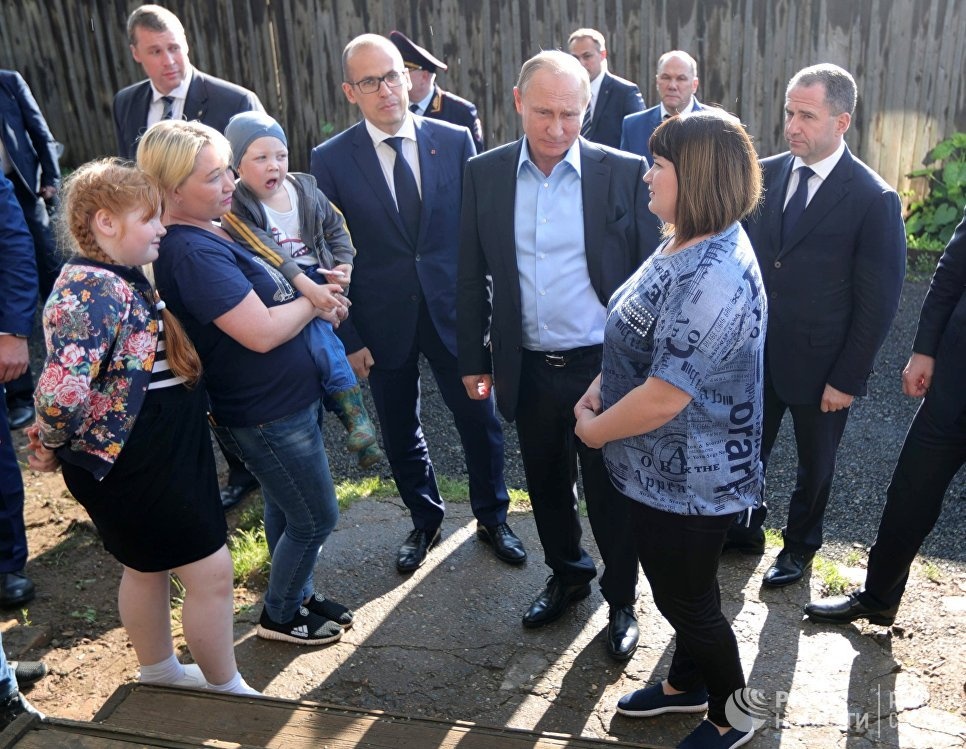 Президент России Владимир Путин вчера, 27 июня, примерил на себя роль «волшебника в голубом вертолёте» из известной детской песенки. Прилетев в столицу Удмуртии в день рождения её жительницы - Анастасии Вотинцевой, которая во время «прямой линии» посетовала на невыносимую жизнь в аварийном бараке, президент привёз с собой букет, путёвку на отдых в Сочи, а главное - обещание до конца года переселить женщину, её трёх детей и соседей в новое жильё.