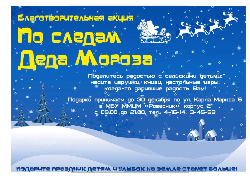 Локальный центр добровольчества «Дари Добро» молодёжного центра «Ровесник» объявляет начало ежегодной благотворительной акции «По следам Деда Мороза».