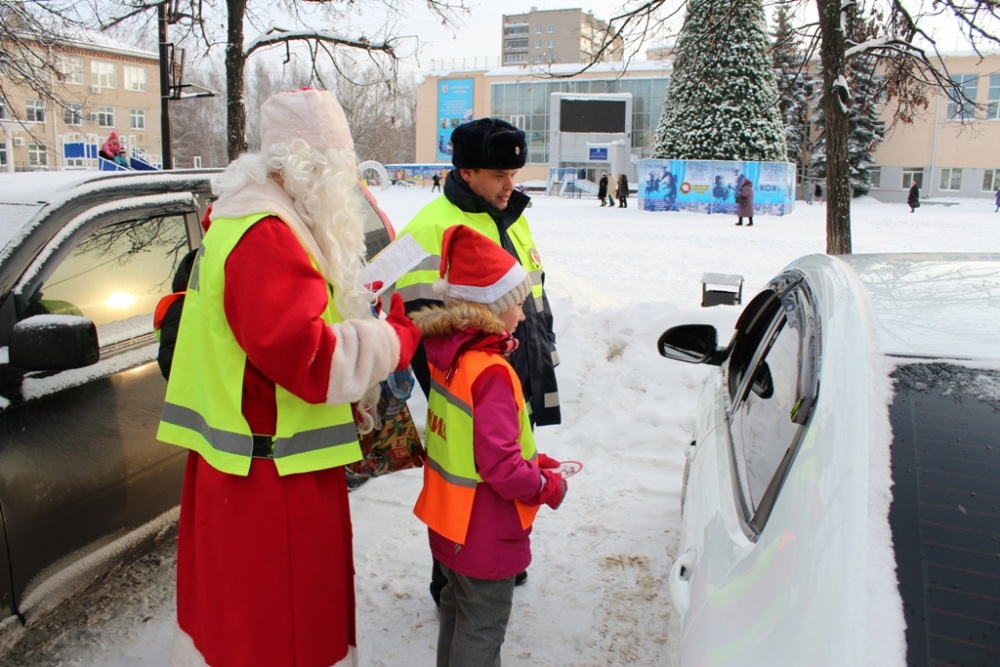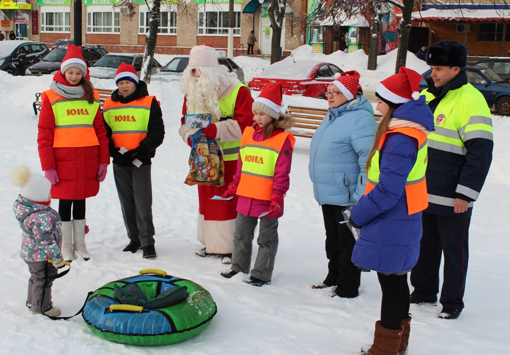 Дед Мороз и ЮИДовцы напоминали детям Правила безопасного поведения на дорогах в зимних условиях и необходимости использования световозвращающих элементов на одежде, а их родителям о том, что нельзя оставлять детей на улице без присмотра и строго соблюдать правила безопасности на дорогах, в праздничные дни.
