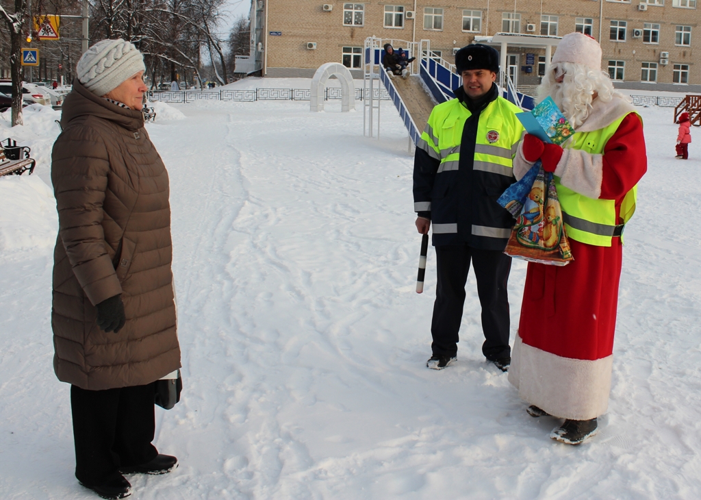 На площади Карла Маркса в преддверии новогодних праздников сотрудники Госавтоинспекции по Чайковскому району совместно с отрядом юных инспекторов движения «Автостоп» в рамках мероприятия «Безопасные каникулы» присоединились ко Всероссийской акции «Полицейский Дед Мороз».