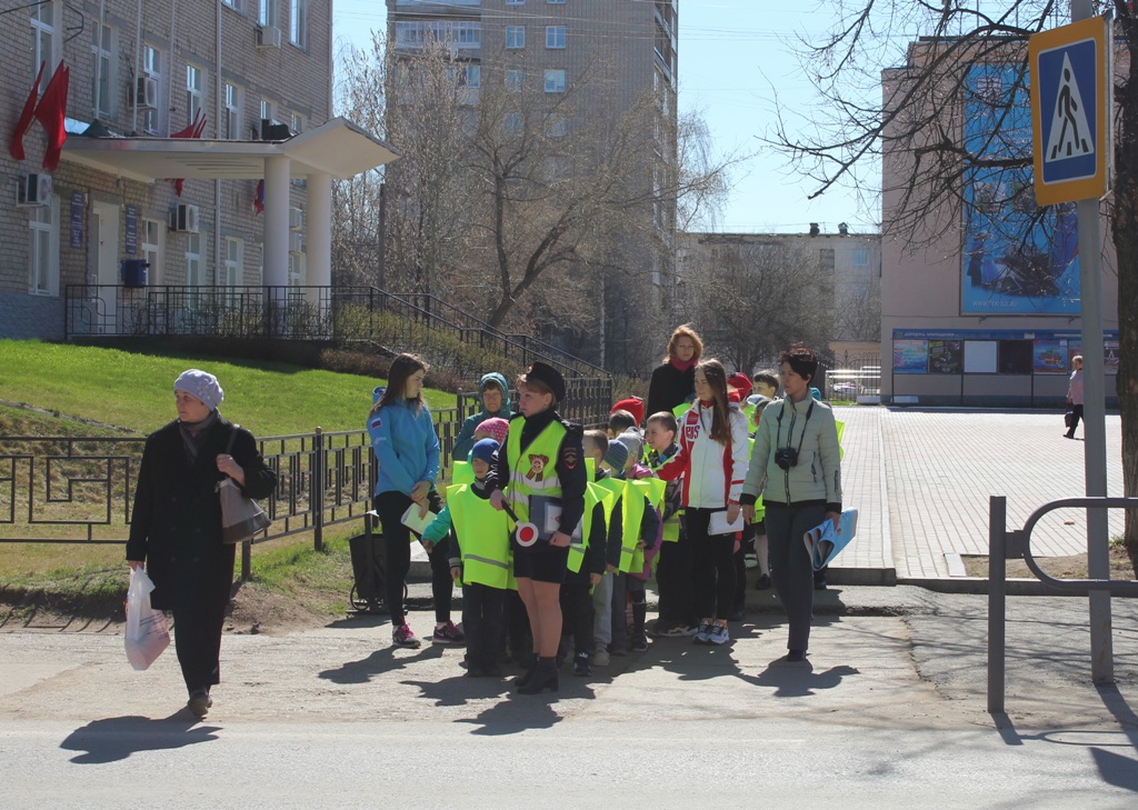 В преддверии летних каникул сотрудники ГИБДД совместно со студентами ЧГИФК и представителями общественного совета при ОМВД России по Чайковскому району организовали акцию «Шагающий автобус» для первоклассников школы.