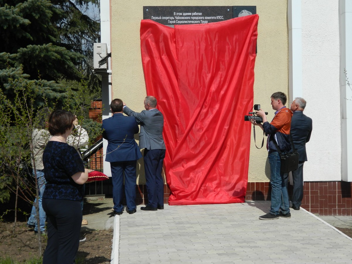 Право открыть мемориальную доску, выполненную по эскизам чайковского художника, писателя Валерия Злобина, было предоставлено главе Чайковского муниципального района Юрию Вострикову, директору Чайковского ППЖТ Анатолию Мыцу и директору Филиала ПАО «РусГидро» «Воткинская ГЭС» Алексею Бякову.