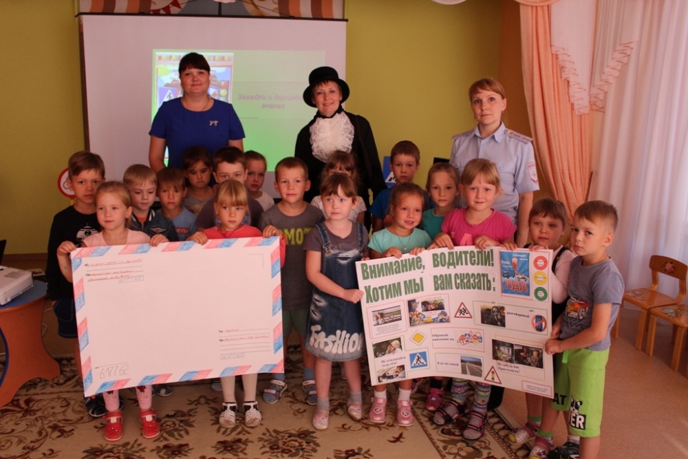 Дети вместе с педагогами и сказочным персонажем «Шапокляк» написали водителям два больших письма с обращением задуматься о будущем, сделав выбор в пользу безопасности, соблюдать ПДД, пропускать пешеходов на пешеходном переходе, не нарушать скоростной режим и перевозить маленьких пассажиров с использованием детских удерживающих устройств.