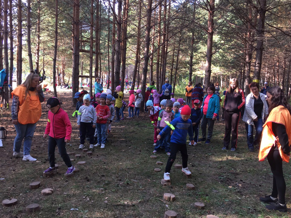 Главным испытанием для ребят стала туристическая полоса препятствий; шестилетним путешественникам пришлось преодолевать звериную тропу, проходить по канатному мосту, скакать по болоту с кочками, спускаться в овраги, искать лекарственные растения и выполнять массу других интересных заданий.