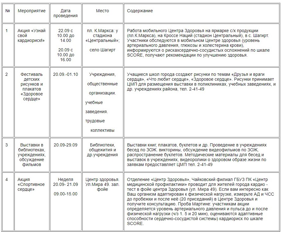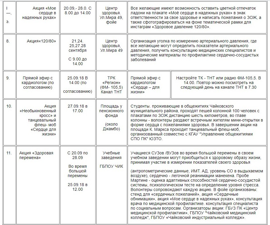 Предлагаем вам ознакомиться с местами и временем проведения других мероприятий, приуроченных к Декаде здорового сердца.