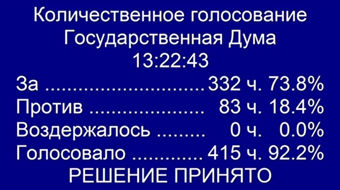Государственная дума в третьем, окончательном, чтении приняла закон о повышении пенсионного возраста. За проголосовали 332 депутата, против — 83, воздержавшихся нет. Совет федерации рассмотрит закон 3 октября. Об этом сообщает газета "КоммерсантЪ".