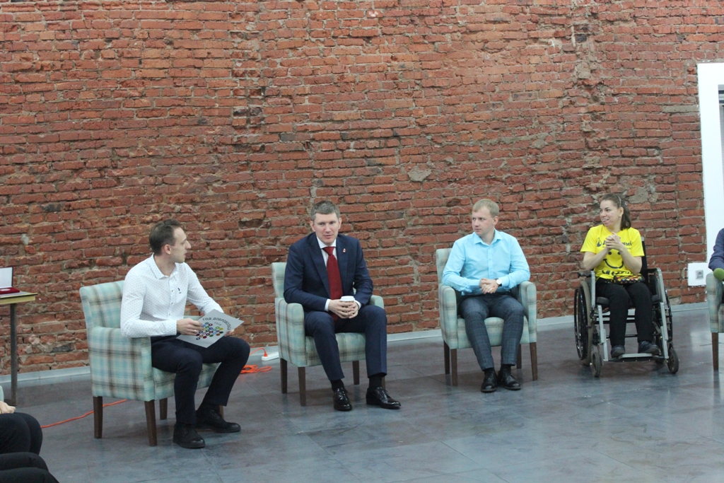 Во время общения с губернатором волонтёры поделились своим опытом реализации социальных проектов. Марина Талык рассказала об организации спортивных мероприятий глазами волонтеров. «На протяжении четырёх лет активно занимаюсь реализацией спортивных мероприятий на территории Пермского края, таких как Ski Jamping, прыжки на лыжах с трамплина, Всероссийские соревнования по лыжному двоеборью, чемпионат России по летнему биатлону, - поделилась Марина. – На этаких массовых мероприятиях, где бушуют эмоции, мы стараемся, чтобы всем гостям и спортсменам было максимально комфортно».