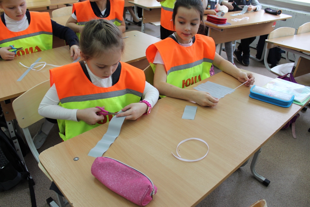 В завершении акции, каждому ученику организаторы раздали светоотражающие памятные ленты, которые были изготовлены на мастер-классе, организованном ЮИДовцами в преддверии акции.