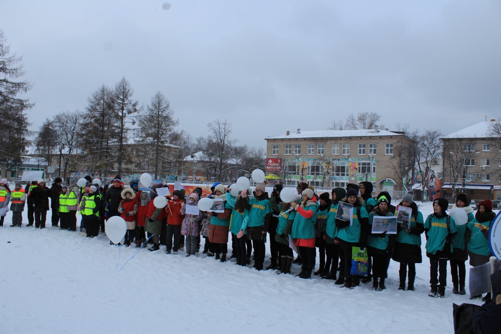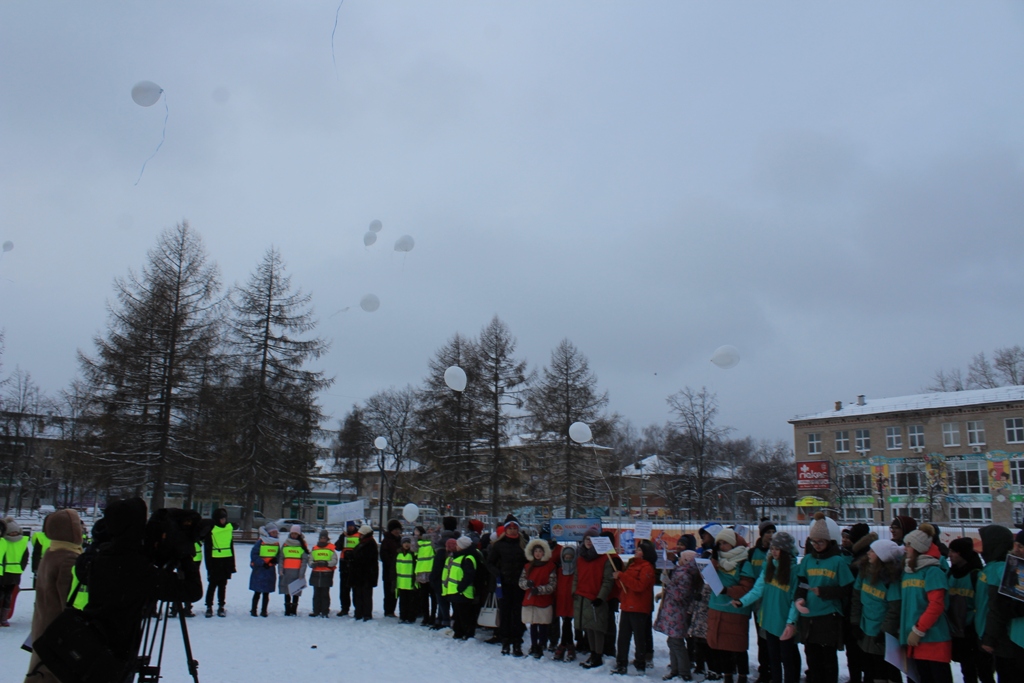 После минуты молчания, в память о жертвах ДТП, участники акции запустили в небо воздушные шары.