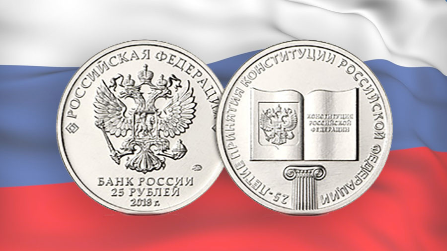 В честь этой даты Центробанк Российской Федерации выпустил в обращение памятную монету из недрагоценного металла номиналом 25 рублей "25-летие принятия Конституции РФ". Её тираж составит один миллион штук, сообщает пресс-служба ЦБ.
