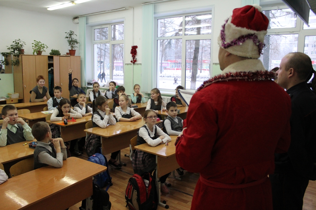Инспектор ГИБДД в роли Деда Мороза загадывал школьникам тематические загадки, за правильные ответы детям вручали сладкие призы. Ребятам рассказали о соблюдении ПДД в каникулы и предупредили о недопущении катания на тюбингах, санях и коньках вблизи проезжей части дороги. Кроме того, полицейский Дед Мороз напомнил о применении светоотражающих элементов на верхней одежде, рассказал детям, что фликер - это средство безопасности для пешеходов в тёмное время суток.