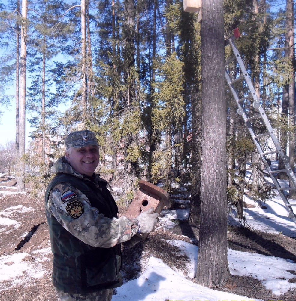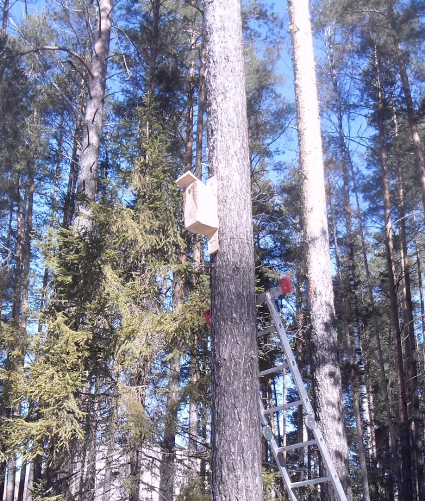 Накануне сотрудники отдела охраны парка «Нечкинский» развесили скворечники по территории национального парка.