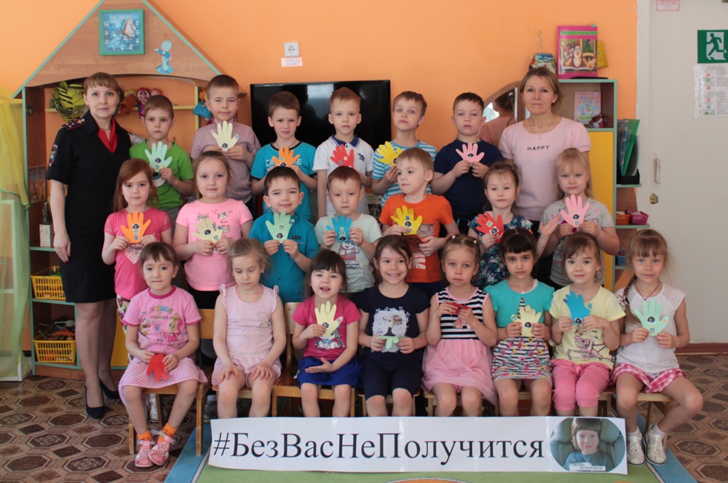 В начале акции воспитанники с воспитателями и инспекторами ГИБДД вырезали ладошки из цветной бумаги. Ребята украшали ладошки разными дорожными знаками, а главным атрибутом стал символ кампании «Без вас не получится».